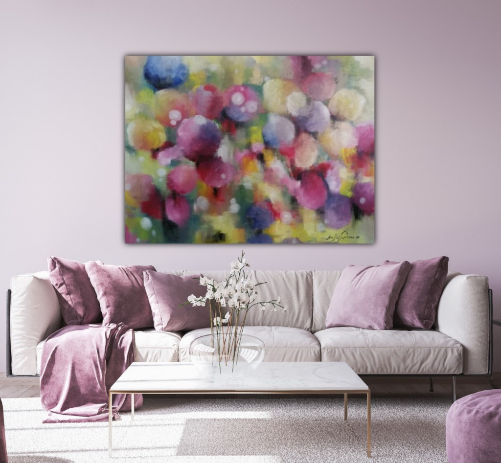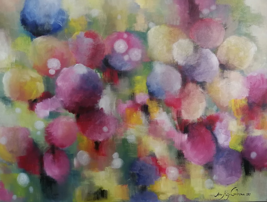 Tämä työ on henkilökohtaisesti minulle erittäin rakas ja tärkeä. Työ syntyi melko nopeasti yhdellä istumalla ja halusi tulla ulos pensselin kautta tällaisenaan. Työ on voimakas ja puhdas. Se antaa minulle voimaa ja energiaa ja kertoo haaveista ja siitä mitä aina odotan – kevättä. Se on mielestäni ehkä ihanin vuodenajoistamme. Työssä on paljon valöörivaihtelua, tummaa ja vaaleaa. Varjoja ja valoa, sekä eri tasoilla olevia elementtejä.
