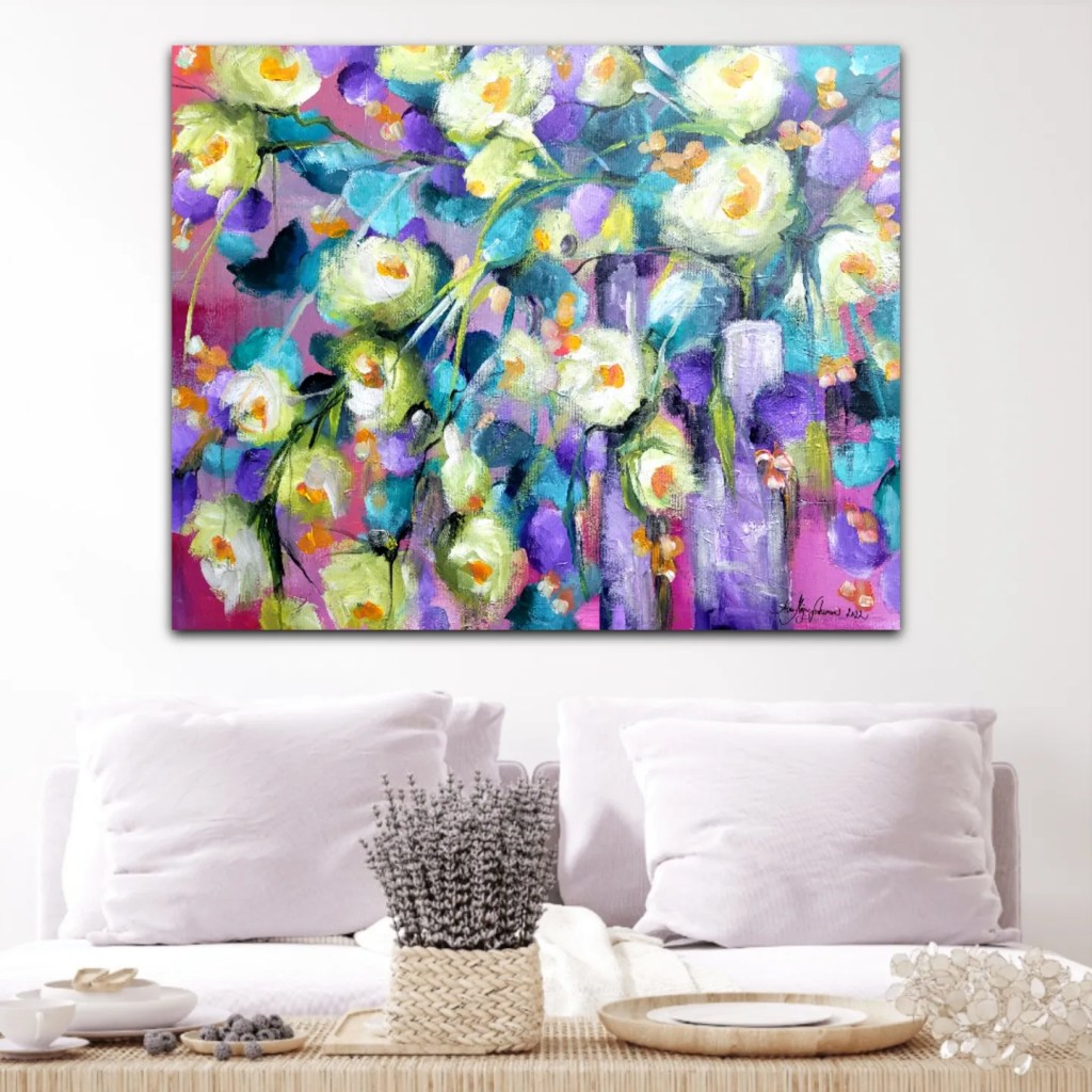 Tämä työ pursuaa iloa ja tuoksua. Loppukesä ja sen värit innoittivat tuottamaan tällaisen taideteoksen. Kerään myös ahkerasti uutta materiaalia tuleviin taidenäyttelyihin!